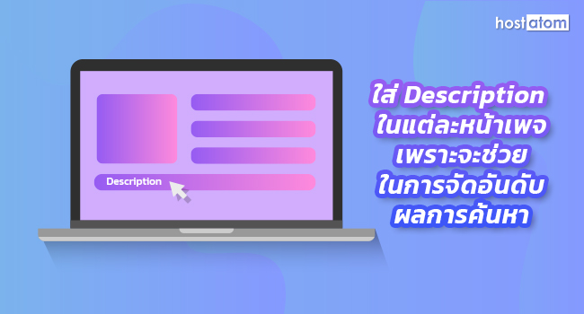 - อย่าลืมใส่ Description และ Title ในแต่ละหน้าเพจด้วย เพราะมันจะช่วยในการจัดอันดับผลการค้นหาได้ และช่วยให้รู้ว่าลิงก์ของหน้าเพจใดจะถูกคลิก ส่งผลให้คนเห็นเว็บของคุณมากขึ้น