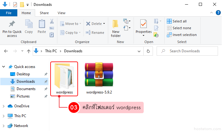 ต่อมาให้แตกไฟล์ WordPress ที่ได้ดาวน์โหลดไว้ออกมา