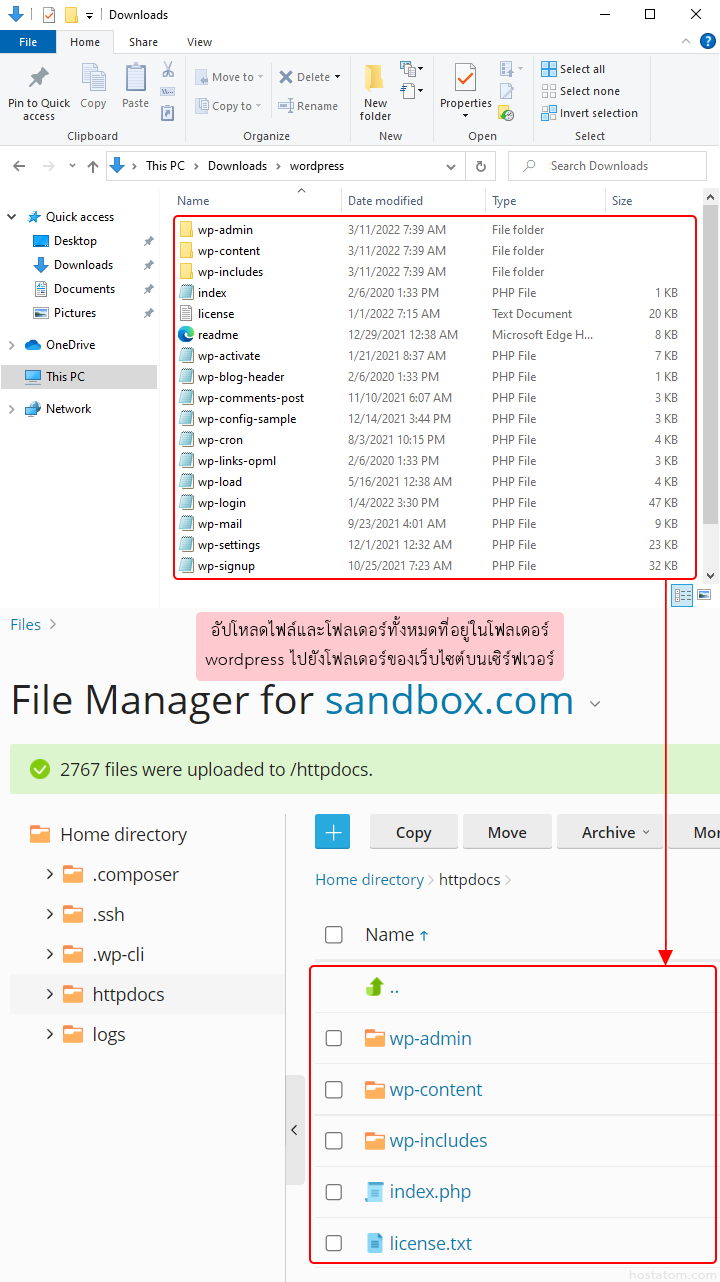 อัปโหลดไฟล์และโฟลเดอร์ทั้งหมดที่อยู่ในโฟลเดอร์ wordpress ไปยังโฟลเดอร์ของเว็บไซต์บนเซิร์ฟเวอร์