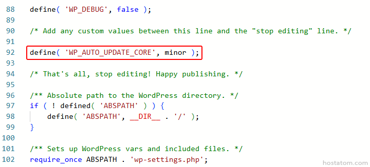 define( 'WP_AUTO_UPDATE_CORE', minor );