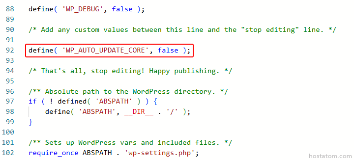 define( 'WP_AUTO_UPDATE_CORE', false );