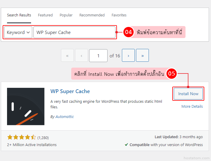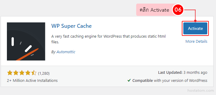 คุณสามารถติดตั้งปลั๊กอิน WP Super Cache โดยทำตามขั้นตอนดังนี้