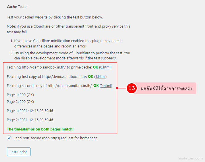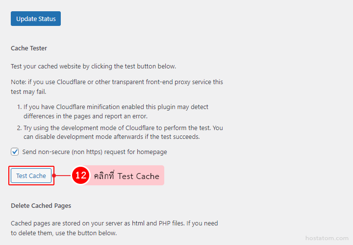 คลิกที่ Test Cahce เพื่อทดสอบการทำงานของปลั๊กอิน
