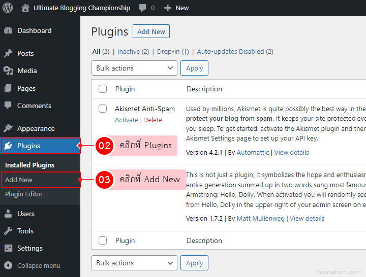 ที่แถบเมนูด้านซ้ายมือ เลือก Plugins > Add New