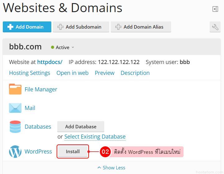 ต่อมาให้ติดตั้ง WordPress ที่โดเมนใหม่