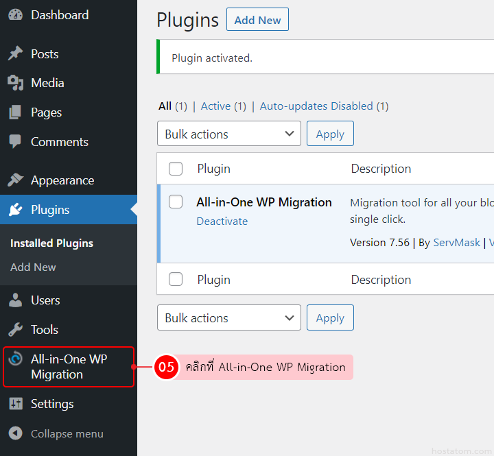 ติดตั้งและเปิดใช้งานปลั๊กอิน All-in-One WP Migration บนเว็บไซต์เก่า (aaa.com)