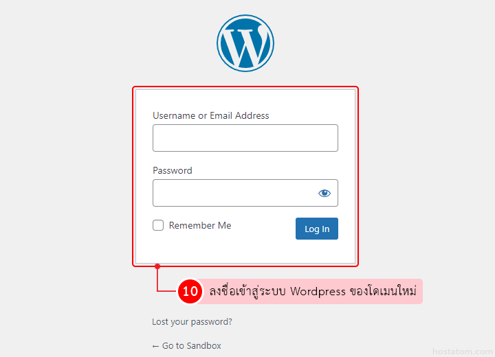 ลงชื่อเข้าสู่ระบบ WordPress ของโดเมนใหม่ (bbb.com)