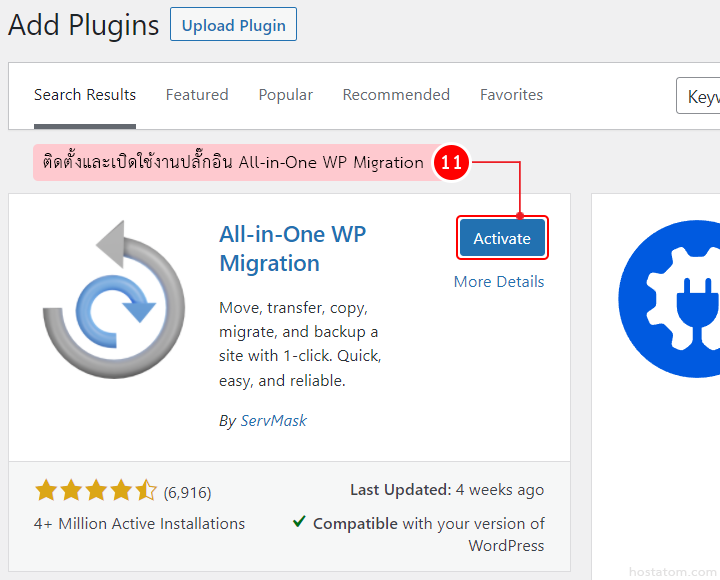 ติดตั้งและเปิดใช้งานปลั๊กอิน All-in-One WP Migration บนเว็บไซต์ใหม่ (bbb.com)