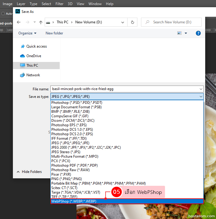 - หากต้องการเปิดไฟล์ webp โดยเปิดผ่านโปรแกรม Photoshop