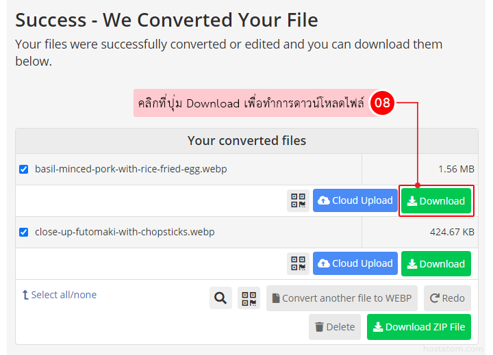 เมื่อเรียบร้อยแล้ว สามารถเก็บไฟล์ที่แปลงเป็น Webp ได้ 3 แบบ