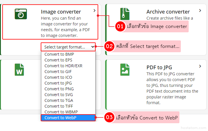 แล้วเลือกหัวข้อ Image converter จากนั้นเลือก convert to webp