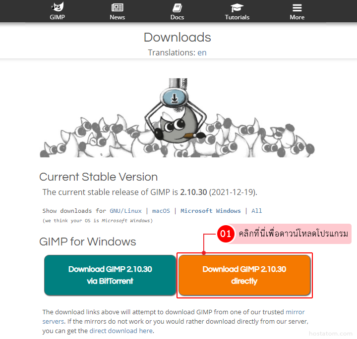 จากนั้นคลิกที่ Download GIMP 2.10.30 Directly