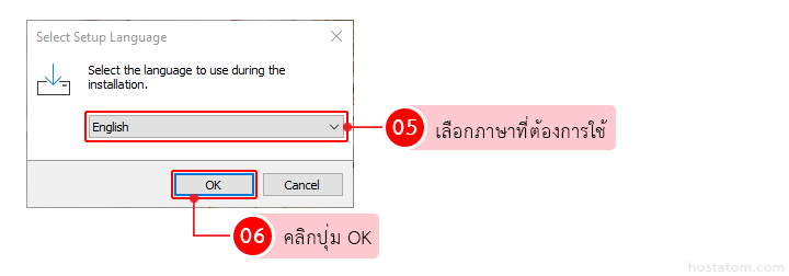 รบบจะแสดงหน้าต่างเพื่อให้เลือกภาษาที่จะใช้งาน => คลิกที่ปุ่ม OK
