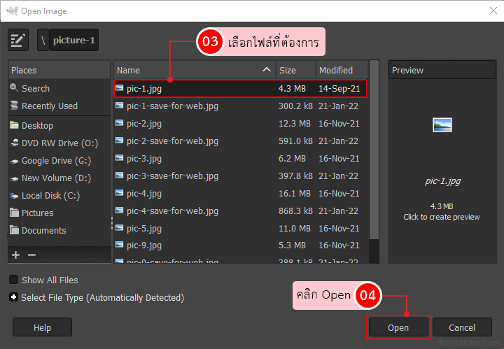 จากนั้นให้เลือกไฟล์รูปภาพที่ต้องการปรับขนาด จากนั้นคลิกที่ปุ่ม Open