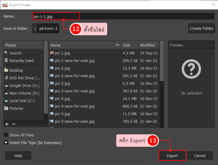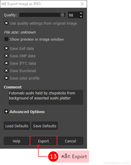 ตั้งชื่อไฟล์ เมื่อเรียบร้อยแล้วคลิกที่ปุ่ม Export
