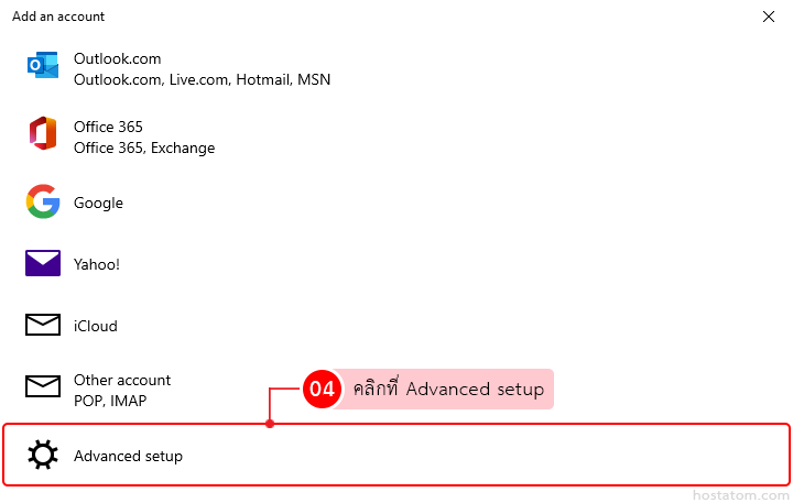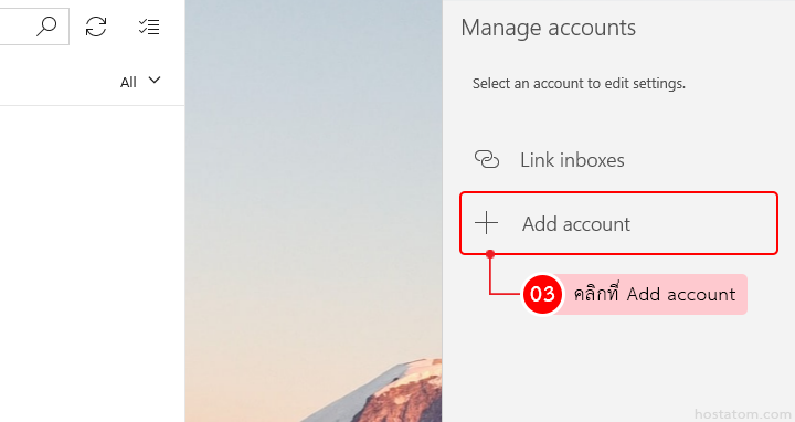สำหรับผู้ที่ใช้งานอีเมลผ่านแอป Mail บน Windows สามารถเพิ่มบัญชีอีเมลของโดเมนอื่นนอกเหนือจากที่ระบบมีให้เลือกได้ตามขั้นตอนต่อไปนี้