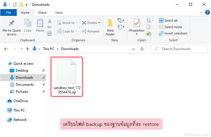 เริ่มจากเตรียมไฟล์ backup ของฐานข้อมูลที่จะ restore