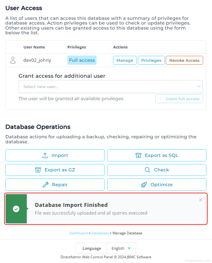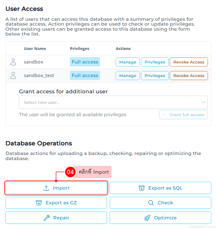 วิธี restore ฐานข้อมูลใน DirectAdmin