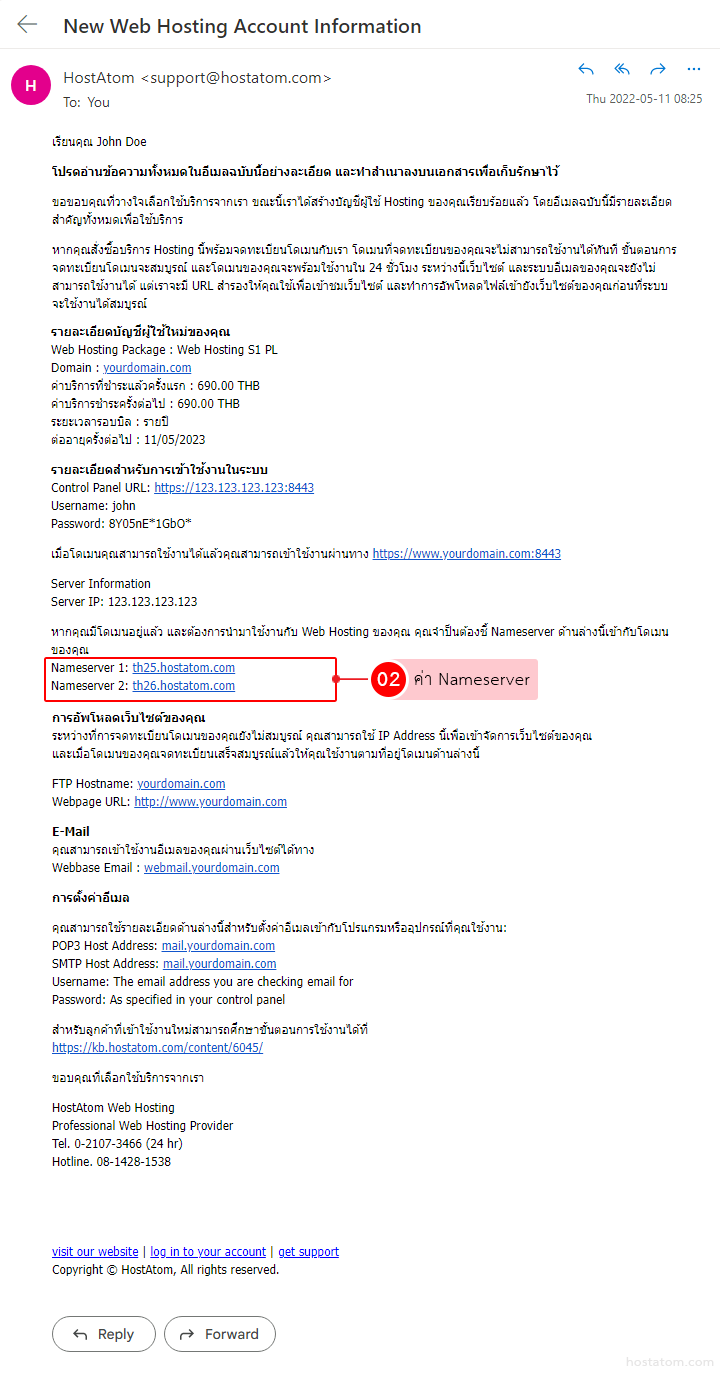 1. ตรวจสอบจากอีเมลที่ทางโฮสอะตอมส่งให้