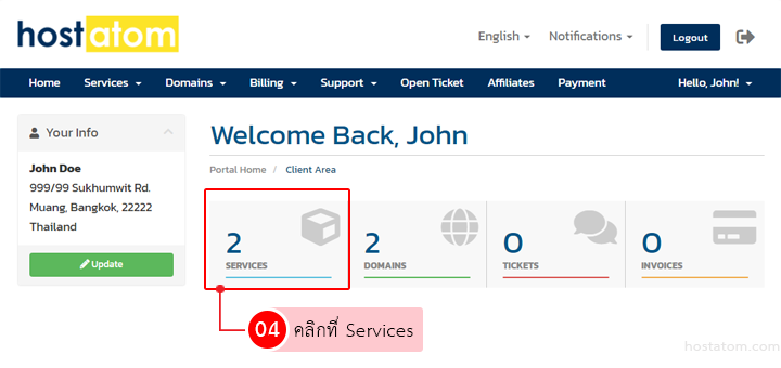 แล้วคลิกที่ปุ่ม Login เพื่อเข้าสู่ส่วนบริการลูกค้าของโฮสอะตอม