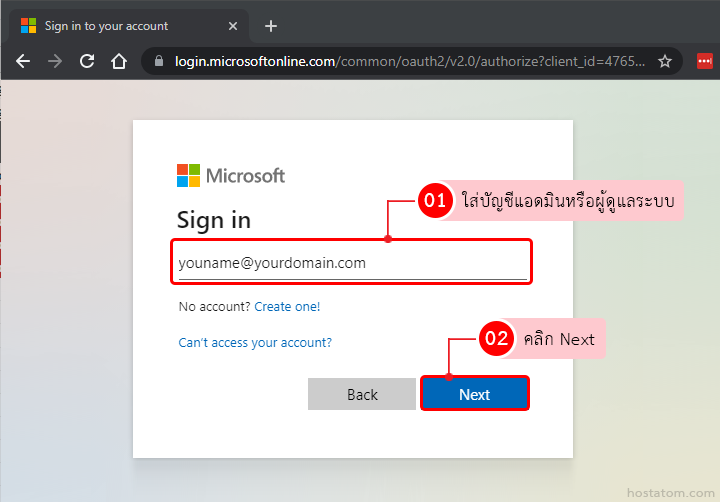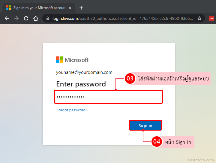 ทำการ Login เข้าสู่ Microsoft 365 admin center ที่ portal.office.com โดยใช้ username และรหัสผ่านระดับแอดมิน