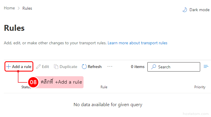ที่ Mail flow ให้คลิกที่ Rules