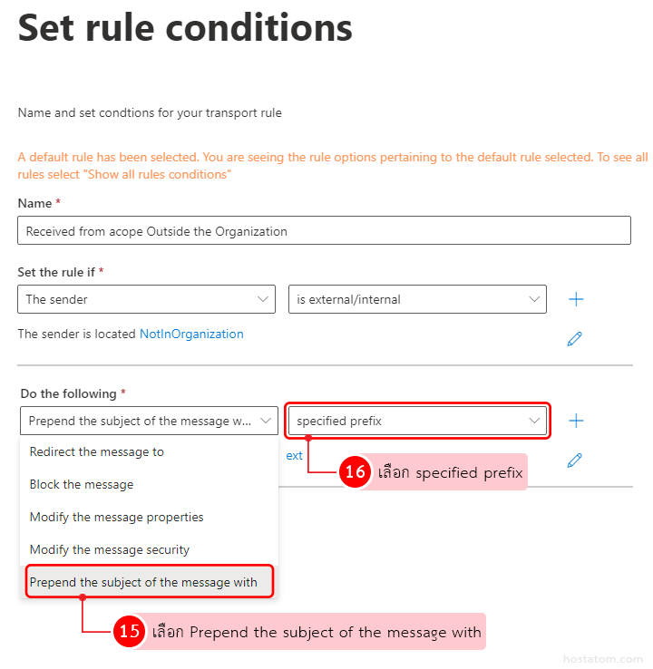 - Do the following: ช่องแรกให้เลือก Prepend the subject of the message with ช่องที่ 2 ให้เลือก specified prefix