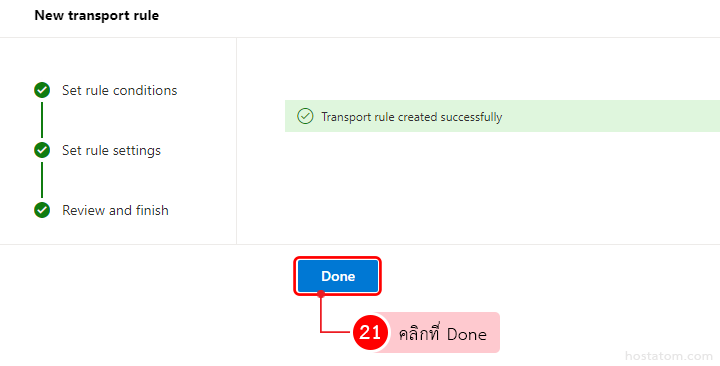 ระบบจะแสดงหน้าว่าการตั้งกฎของเราเสร็จเรียบร้อยแล้ว คลิกที่ปุ่ม Done