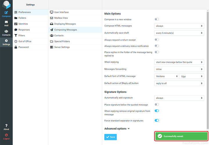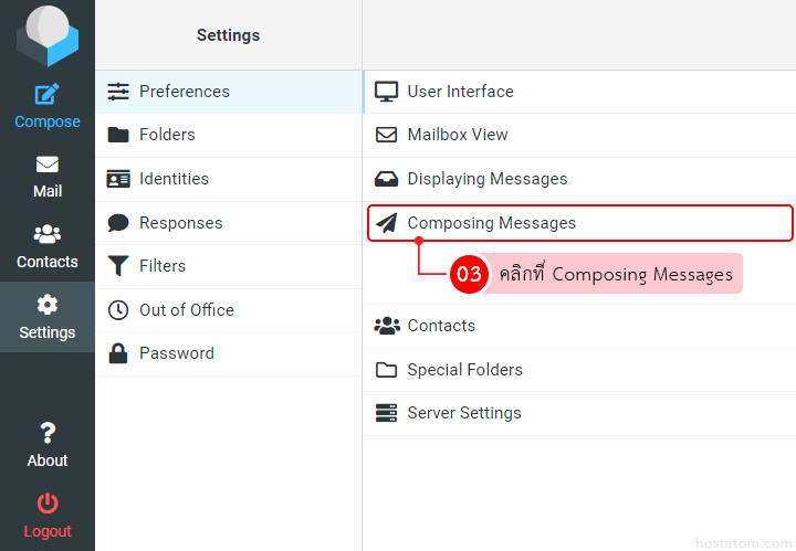 คุณสามารถตั้งค่าการเขียนเมลแบบ HTML ใน Roundcube Webmail เพื่อเปิดใช้เครื่องมือการเพิ่มรูปแบบตัวอักษร ตัวหนา ตัวเอียง สีตัวอักษร แทรกรูปภาพ multimedia ตาราง และอื่นๆ ได้ตามขั้นตอนต่อไปนี้
