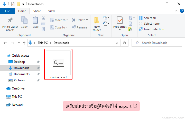 ก่อนอื่นให้เตรียมไฟล์รายชื่อผู้ติดต่อที่ได้ export ไว้
