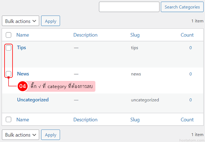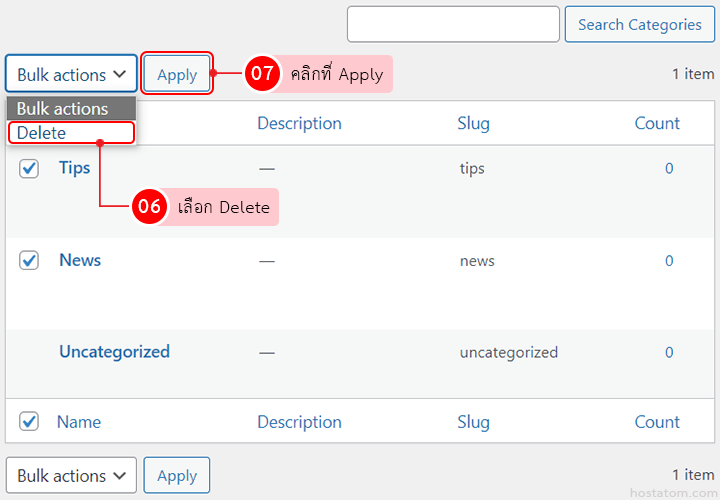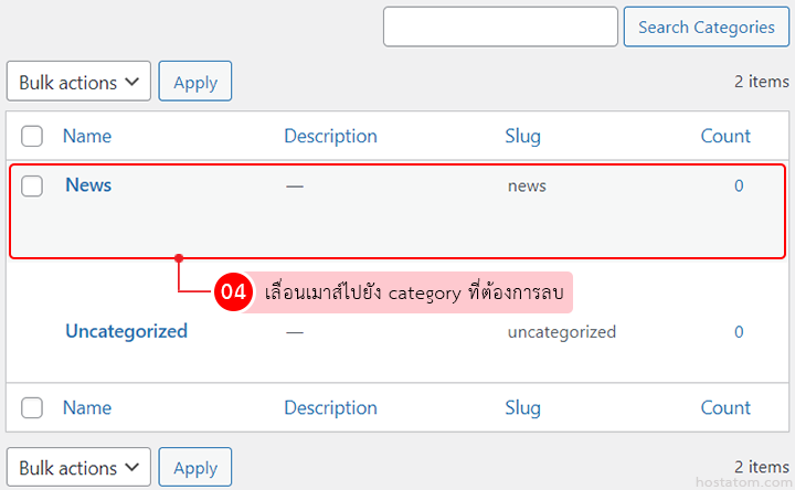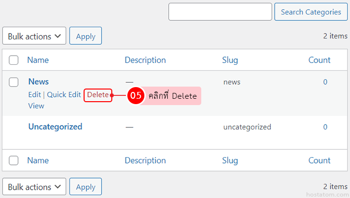 หากต้องการลบ category ใน WordPress สามารถทำได้ตามขั้นตอนต่อไปนี้