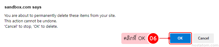 ระบบจะแสดงหน้าต่างแจ้งเตือนว่าการลบ category ดังกล่าวจะเป็นการลบแบบถาวรโดยไม่สามารถกู้คืนได้ ให้คลิกที่ OK