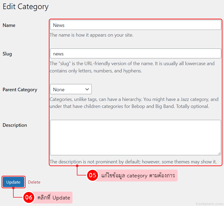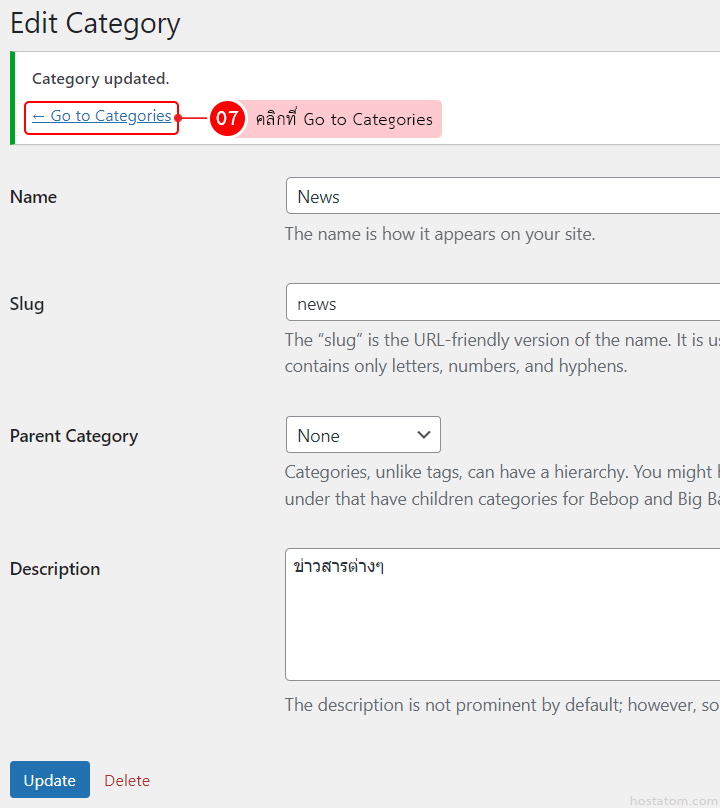 แก้ไขข้อมูล category ตามต้องการ เมื่อเสร็จแล้วให้คลิกที่ Update
