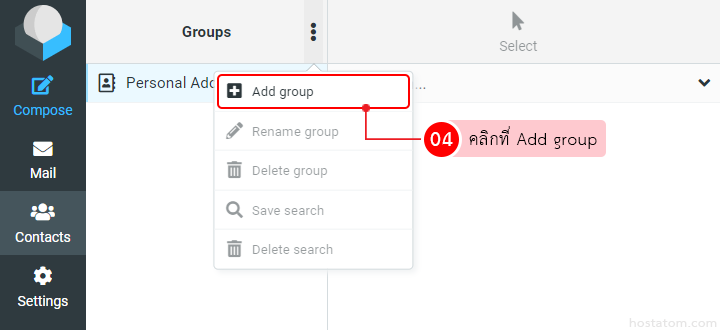 คุณสามารถสร้าง เปลี่ยนชื่อ และลบ group contact ใน RoundCube Webmail ได้ตามขั้นตอนต่อไปนี้