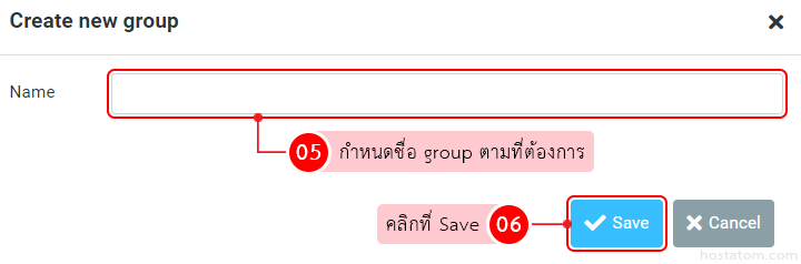 กำหนดชื่อ group ในช่อง Name ตามต้องการ จากนั้นคลิกที่ Save