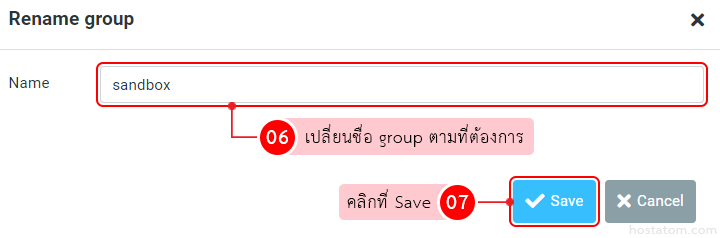 เปลี่ยนชื่อ group ในช่อง Name ตามต้องการ จากนั้นคลิกที่ Save