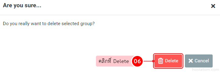 ระบบจะแสดงหน้าต่างยืนยันการลบ group ขึ้นมา ให้คลิกที่ Delete