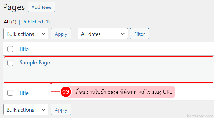 เลื่อนเมาส์ไปยัง page ที่ต้องการแก้ไข slug URL