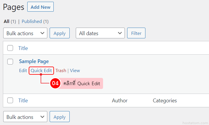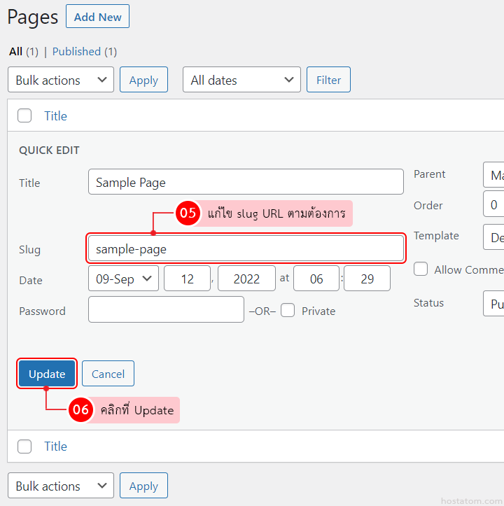 วิธีตั้งค่า slug URL ให้กับ page แบบ quick edit