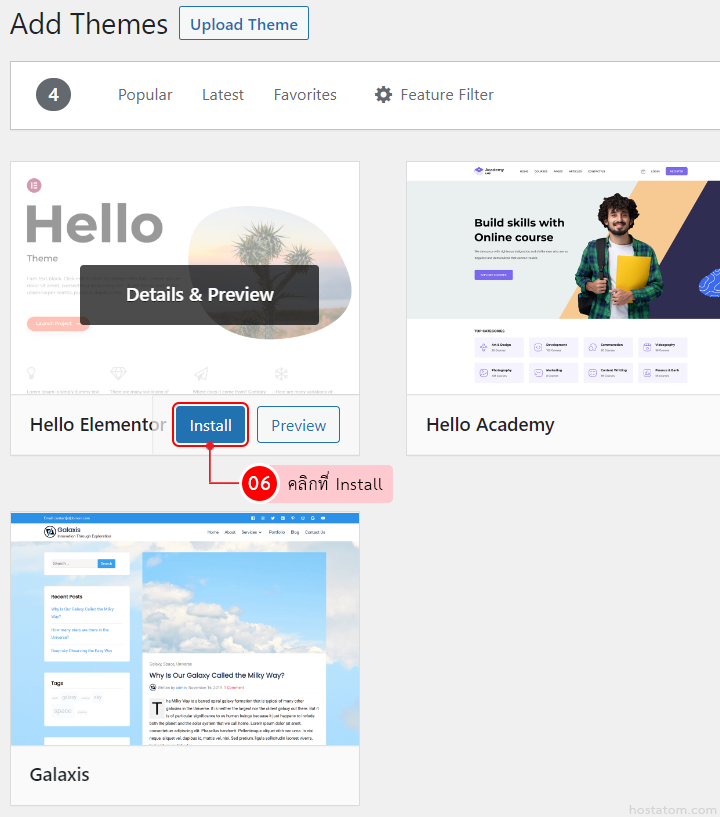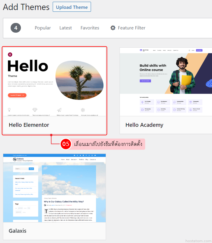 เลื่อนเมาส์ไปยังธีมที่ต้องการติดตั้ง