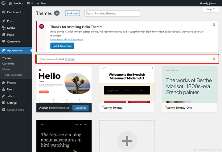 ระบบจะแจ้งว่าได้ติดตั้งธีมดังกล่าวให้แล้ว หากต้องการใช้งานธีมดังกล่าวเลย ให้คลิกที่ Activate