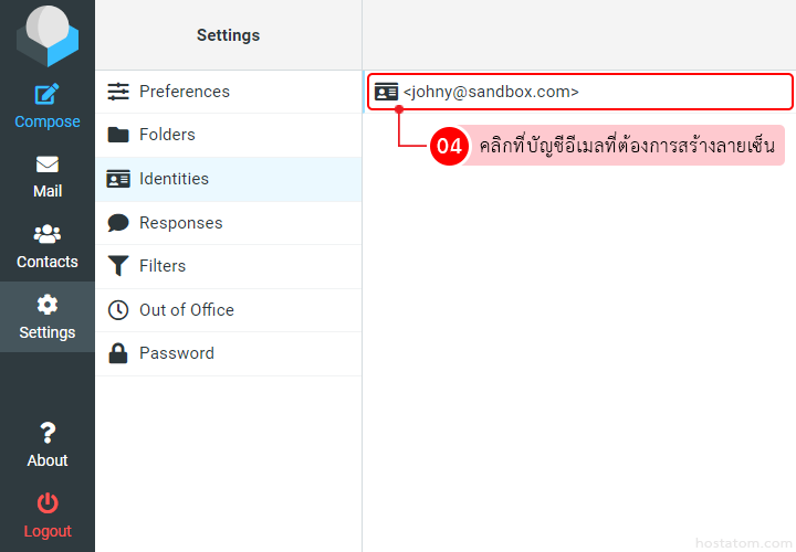 การสร้างลายเซ็น คือ การที่เราใส่ลายเซ็นเราหรือข้อความสั้น ๆ เกี่ยวกับตัวเรา เช่น เบอร์โทร ชื่อบริษัทหรือลิงก์ของบริษัท ไปยังส่วนท้ายของอีเมล โดยคุณสามารถสร้างลายเซ็นใน Roundcube Webmail ได้ตามขั้นตอนต่อไปนี้