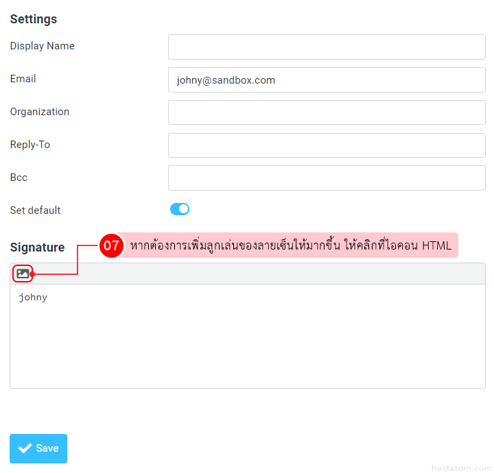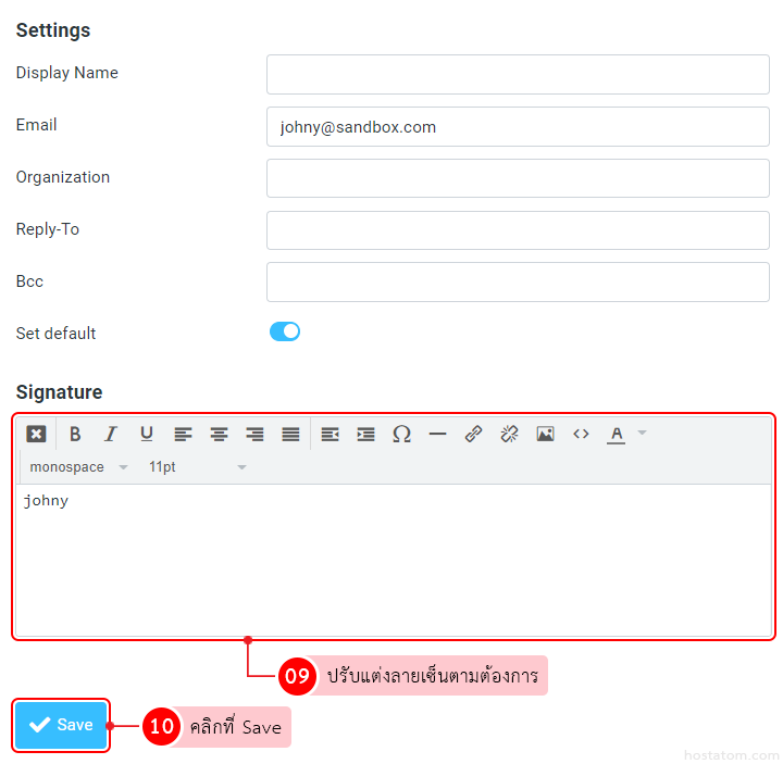 ปรับแต่งลายเซ็นตามต้องการ จากนั้นให้คลิกที่ Save