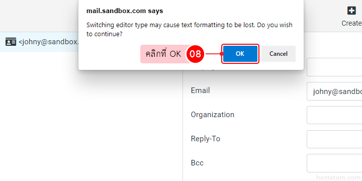 ระบบจะแจ้งว่าการเปลี่ยนรูปแบบ editor อาจทำให้ลายเซ็นที่ได้ตั้งไว้ก่อนหน้านี้สูญหาย ให้คลิกที่ OK