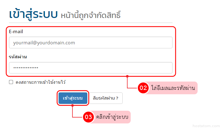 ใส่อีเมลที่ลงทะเบียน และรหัสผ่าน จากนั้นคลิกที่ปุ่ม Login เพื่อเข้าสู่ระบบ