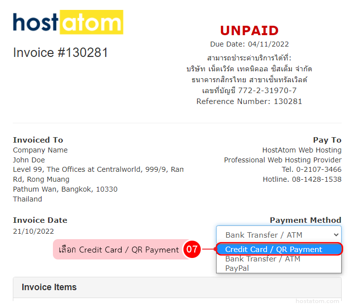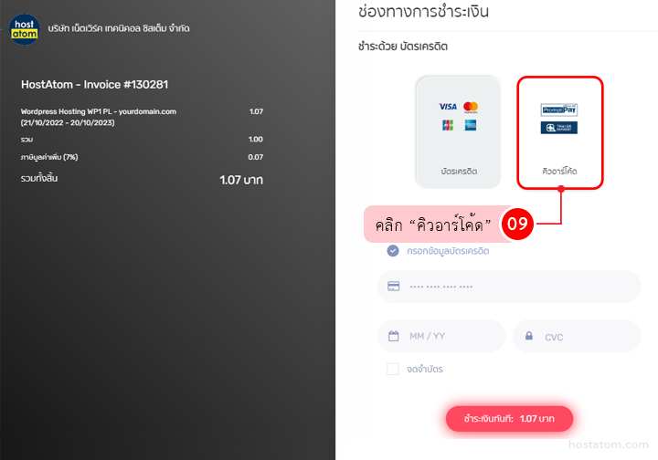 สำหรับผู้ใช้งานบริการกับทางโฮสอะตอม สามารถชำระเงินผ่านระบบ QR Code ของโฮสอะตอมได้เลยนะคะ สำหรับขั้นตอนการทำก็ไม่ยุ่งยาก ซึ่งขั้นตอนการทำมีดังนี้