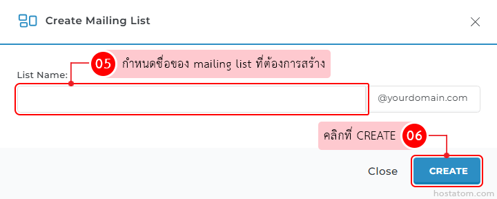 กำหนดชื่อของ mailing list ที่ต้องการสร้าง จากนั้นคลิกที่ CREATE