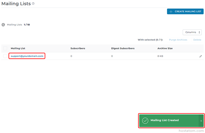 ระบบจะแจ้งว่าได้สร้าง mailing list ดังกล่าวแล้ว