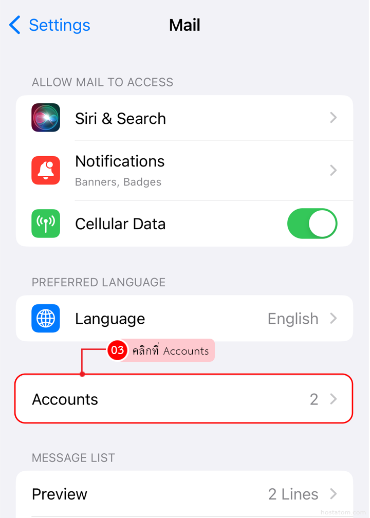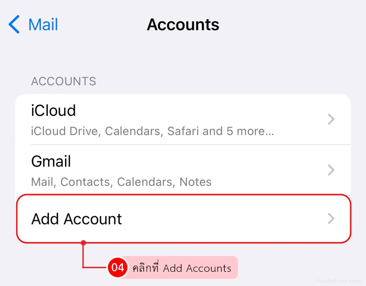 ในหน้า Add Account ที่หัวข้อ MAIL เลือก Add Mail Account