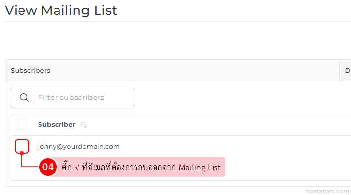 ติ๊ก √ ที่อีเมลที่ต้องการลบออกจาก Mailing List